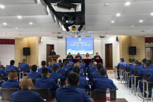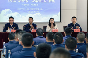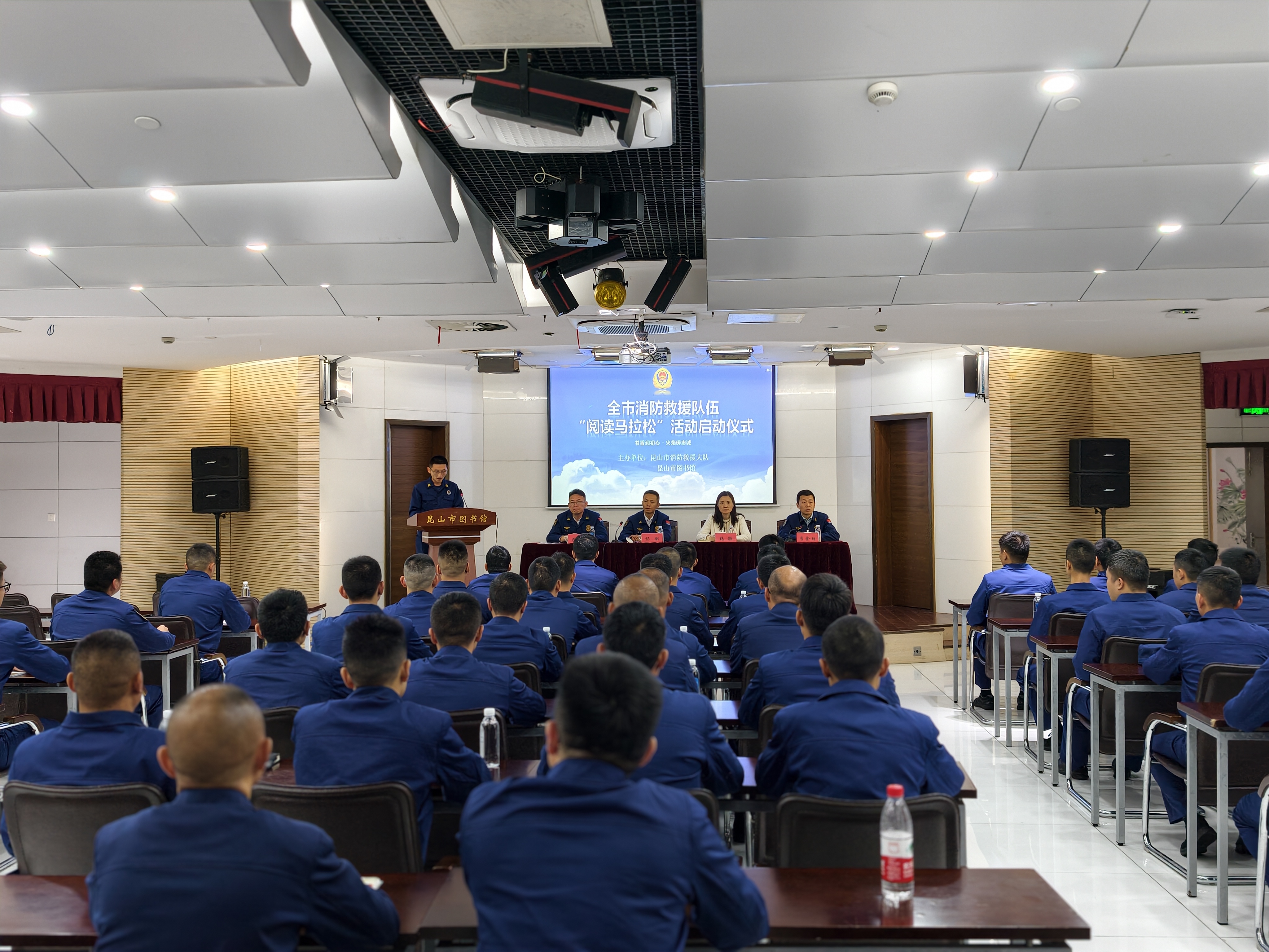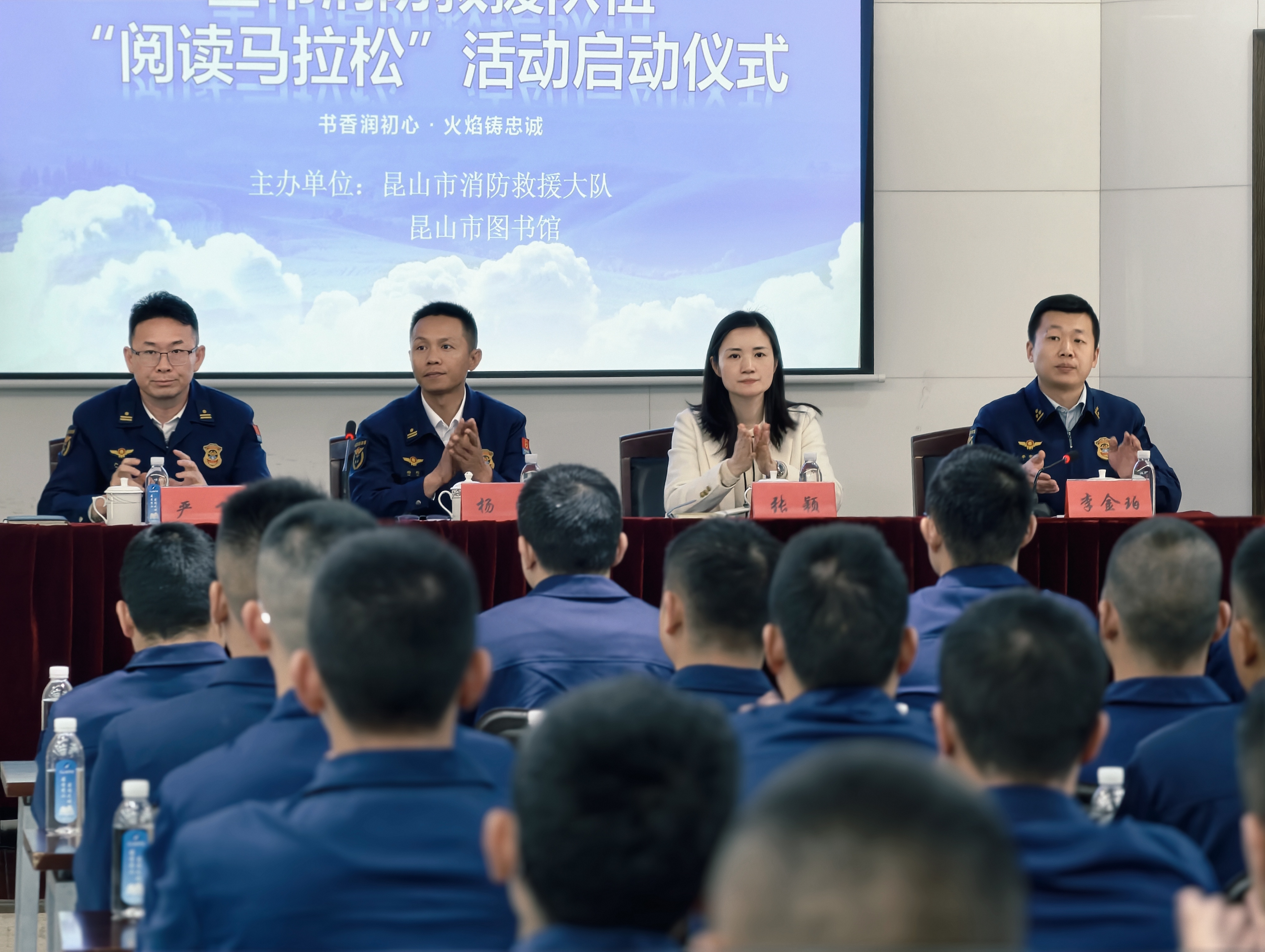 4月22日,昆山市消防救援大队在图书馆一楼多功能厅举行全市消防救援队伍“阅读马拉松”活动启动仪式。消防救援大队政委杨刚、副大队长严飞、专职管理干部李金珀,市图书馆馆长张颖、副馆长龚广宇,以及大队各消防救援站指战员代表共50人参加活动。